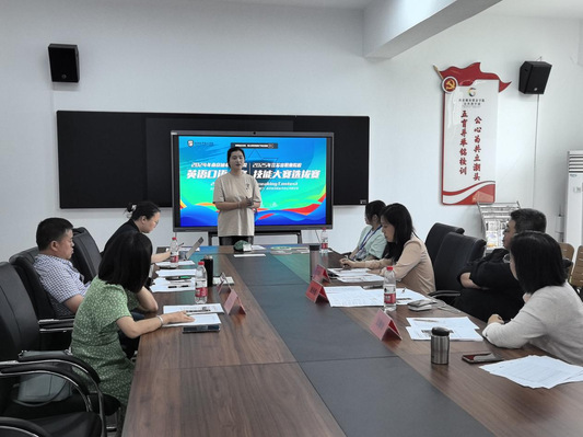 为了更好地模拟省赛模式,赛前,英语教研室老师对赛题进行了充分的推敲和选择,将比赛设计为中国故事与情景交流两个环节。在中国故事环节每位参赛选手给定话题,根据题目要求用英语进行演讲,讲述中国故事,介绍中华文化情景交流环节,每位参赛选手现场给定一份职场相关的工作场景描述,根据题目要求扮演其中的一个角色,与主试官进行一对一的现场问答赛中,由大赛经验丰富的五位老师担任评委,根据学生表现,现场打分。其余老师负责候考,负责备考室,核录成绩等,分工明确,确保了本次大赛顺利进行。