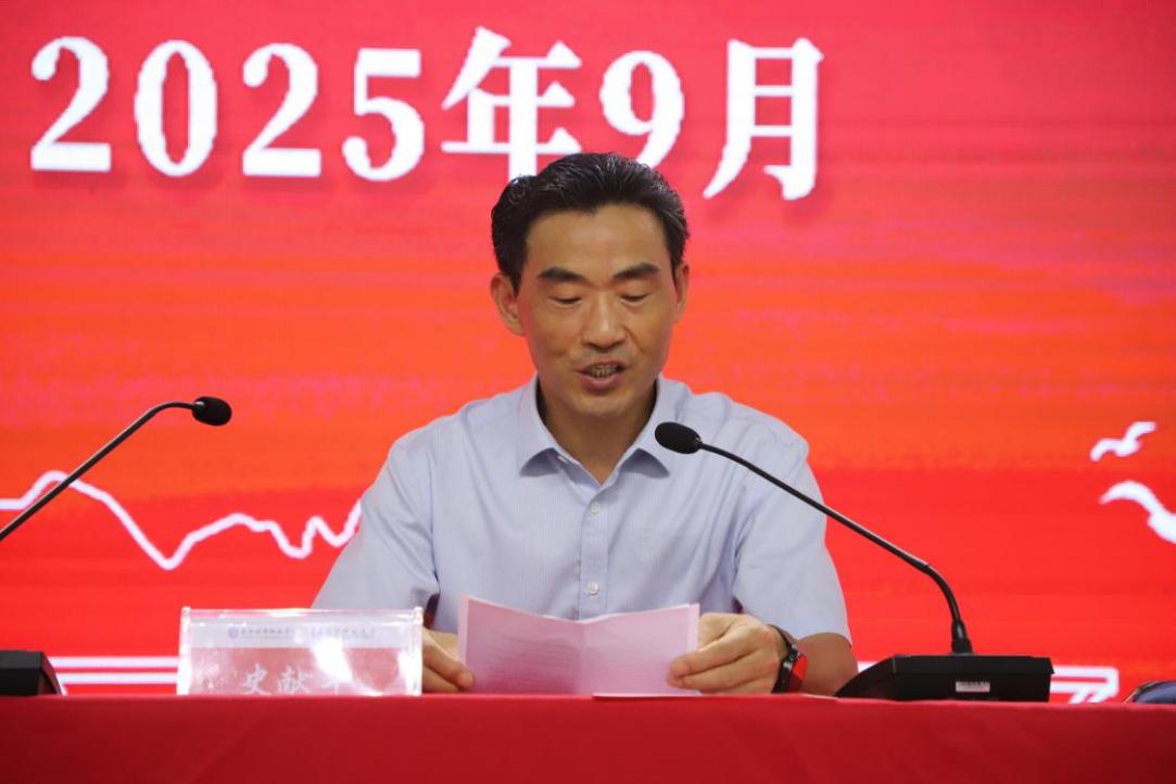史献平副书记受学校党政委托,首先向承训部队长期以来对学校军训工作及国防教育工作的关心与支持表示衷心感谢;同时向来自全国各地的2700余名新生致以热烈的欢迎。在强调军训重要意义的同时,他对参训同学提出四点希望:一是以实际行动传承红色基因,牢记“修德砺能”校训,以教官为榜样,严格要求自己、服从指挥,认真学习军事知识与技能;二是以钢铁意志锤炼自身素质,勇于直面烈日、酷暑与风雨,在艰苦训练中磨砺意志、强健体魄;三是以自律尊重凝聚集体力量,在军训中学会自我约束、相互尊重,主动关心战友,让同学情、战友情成为大学生涯中珍贵的财富;四是以安全意识确保军训顺利,时刻关注自身安全,规范参与训练。
